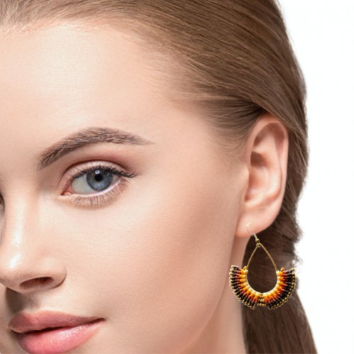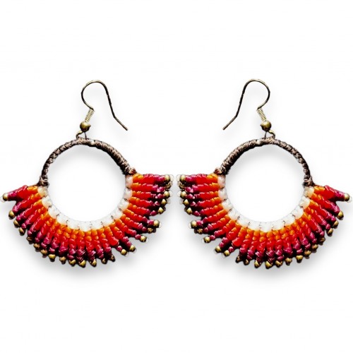 Vibrant Red & Orange Gradient Thread Hoop Earrings – Artisan Embroidered Bohemian Statement Jewelry