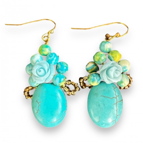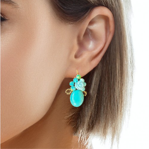 Handmade Boho Teardrop Dangle Earrings with Soft Blue Floral Beads Jewelry