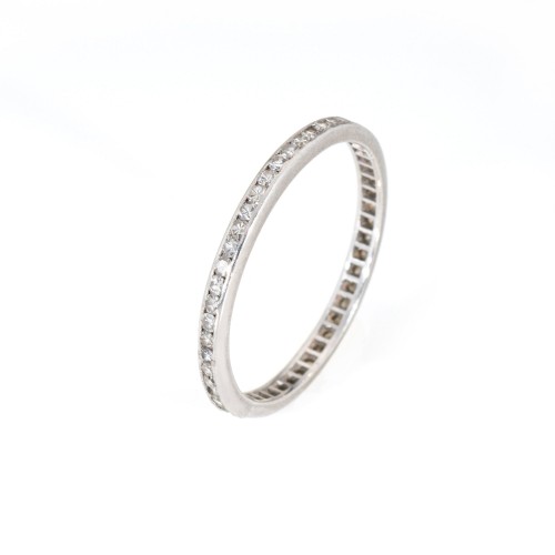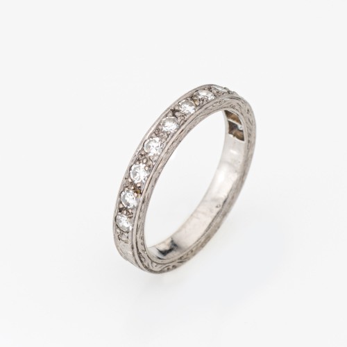 Vintage Art Deco Diamond Eternity Ring Sz 5.75 Platinum Band Wedding Jewelry