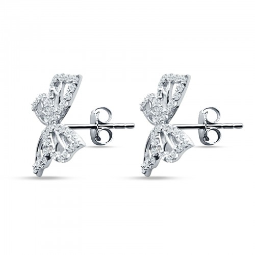 Butterfly Stud Earring Cubic Zirconia 925 Sterling Silver Wholesale 13mm