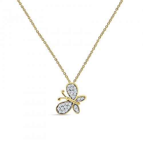 Butterfly Necklace Diamond Pendant 14K Yellow Gold 0.13ct Wholesale