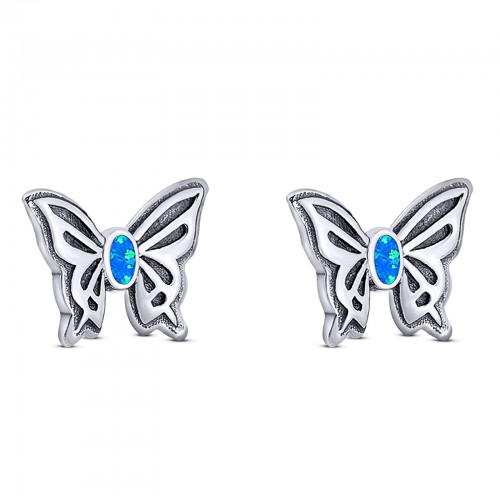Butterfly Stud Earring Lab Created Blue Opal Push Back 925 Sterling Silver Wholesale