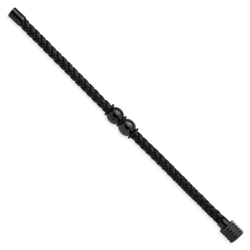 Chisel Stainless Steel Polished Black IP-plated Braided Black Leather and Rubber 8.25 inch Bracelet