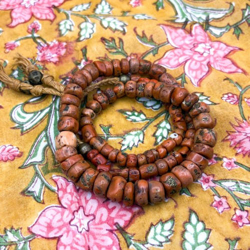 Antique Coral with Brass Inlaid Strand Necklace From Nepal, E