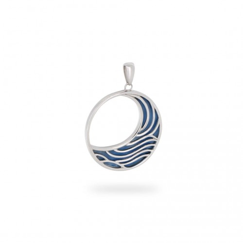 Sterling Silver Moon & Ocean Wave Pendant – Mother of Pearl Shell Inlay, Rhodium-Plated