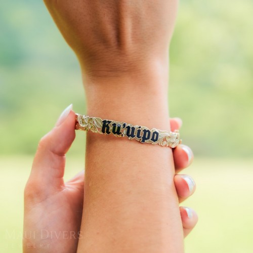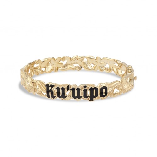 Hawaiian Heirloom Kuʻuipo (Sweetheart) Plumeria Enamel Hinge Bracelet in Gold – 10mm 7.5″