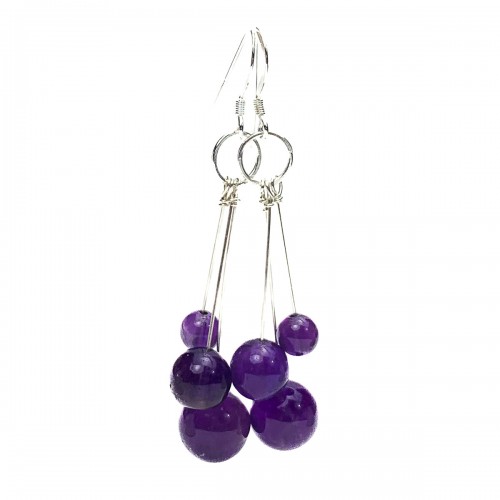 Amethyst, Moonstone, Herkimer Diamond Knotted Y Necklace With Sterling Silver Spring Clasp