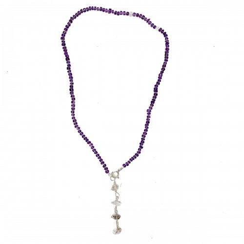 Amethyst, Moonstone, Herkimer Diamond Knotted Y Necklace With Sterling Silver Spring Clasp