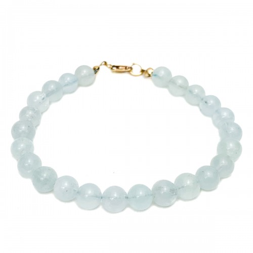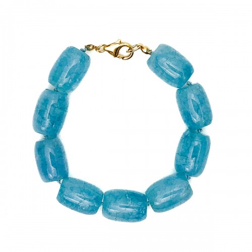 Aquamarine Smooth Barrel Knotted Bracelet With Gold-Filled Trigger Clasp