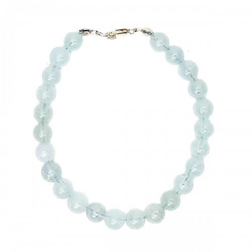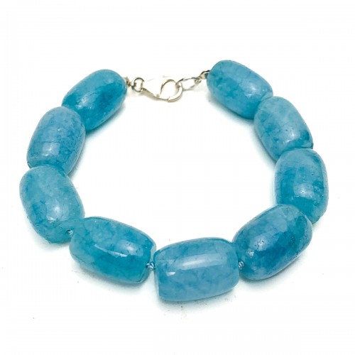 Aquamarine Smooth Barrel Knotted Bracelet With Sterling Silver Trigger Clasp