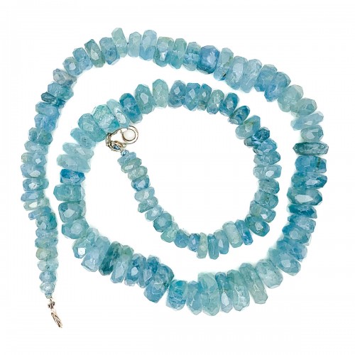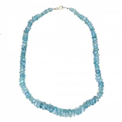 Aquamarine Rough Faceted Chunk Necklace With Sterling Silver Trigger Clasp