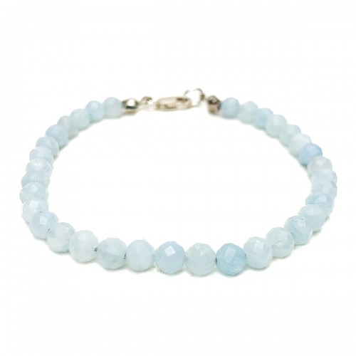 Aquamarine Faceted 4mm Bracelet With Sterling Silver Lobster Clasp