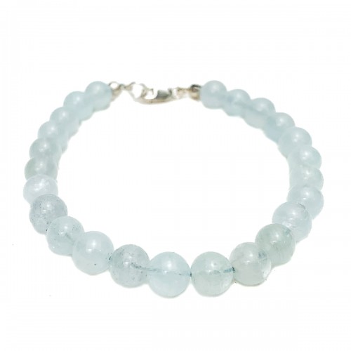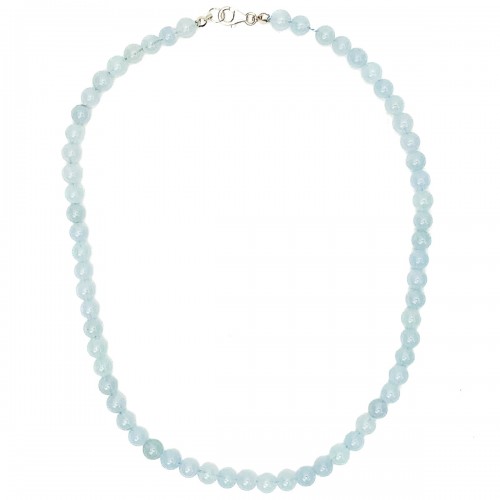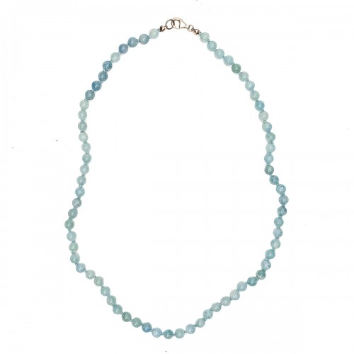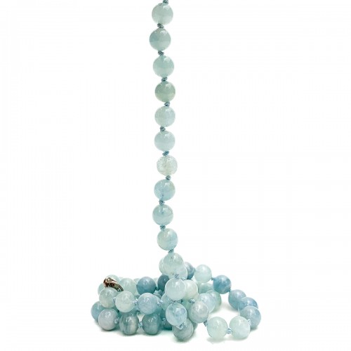 Aquamarine 6mm Knotted Necklace With Sterling Silver Trigger Clasp