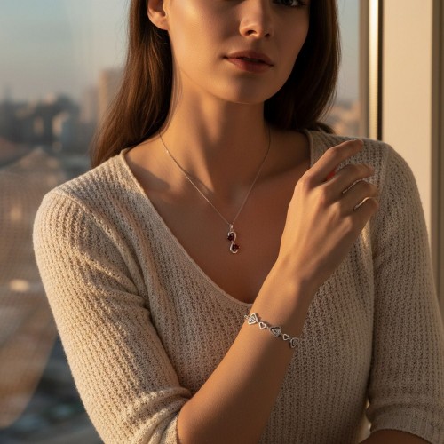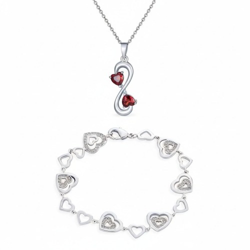 Whimsical Cubic Zirconia Ruby Red CZ Devil Heart Stud Earring Pendant Jewelry Set Sterling Silver