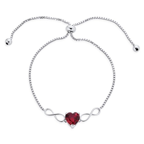 Romantic Delicate CZ Accent Infinity & Heart Bolo Bracelet Sterling Silver Adjustable Slide