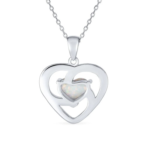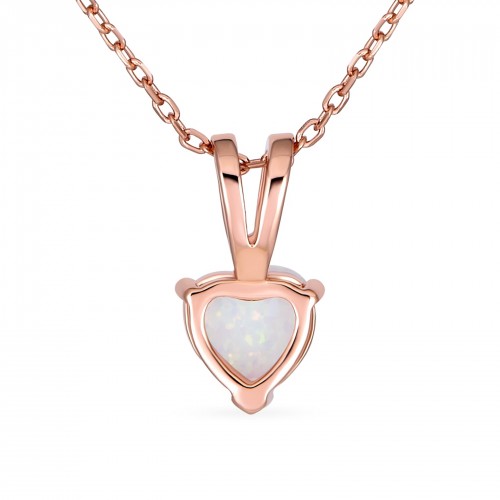 Romantic Love Necklace Created White Opal Heart Pendant Rose Gold .925 Sterling Silver