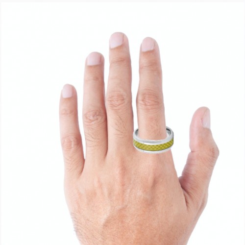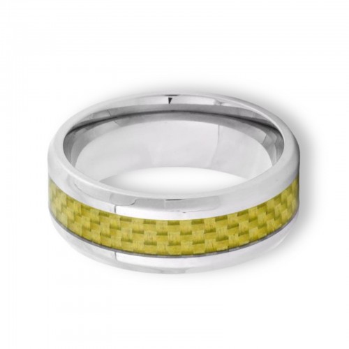 Tungsten Ring Yellow Gold Carbon Fiber Inlay Silver Beveled Edge Band 8