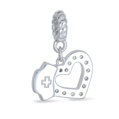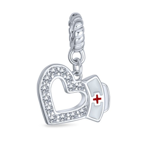 Graduate Heart Shape Caduceus RN Nurse Cap Dangle Bead Charm Sterling Silver Fits European Bracelet