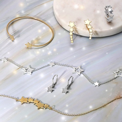 Minimalist Ear Cuff Cartilage with Celestial North Star Design in Sterling Silver Silver Set