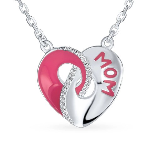 Crystal Accent 3D Interlocking Heart Pendant Necklace for Mom in Sterling Silver