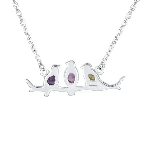 Inspirational CZ Accented Pendant Necklace with Three Birds on a Branch Silver