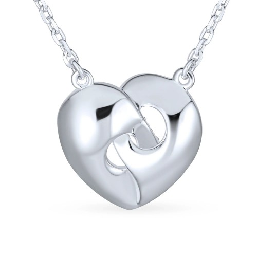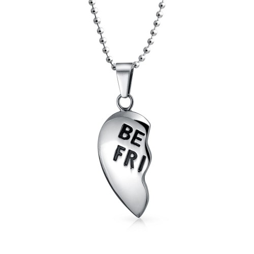 BFF Break Apart 2PC Heart Pendant Necklace – Silver Tone Stainless Steel