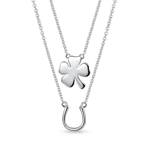 Layered Four Leaf Clover Shamrock Pendant Necklace Silver Western Jewelry