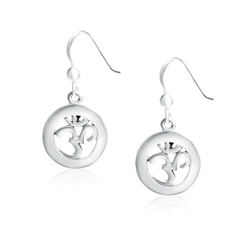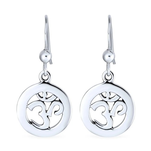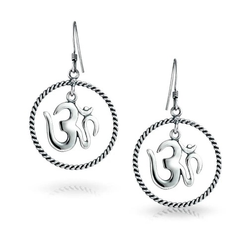 Spiritual Amulet Dangle Earrings Aum Om Ohm Sanskrit Symbol Sterling Silver