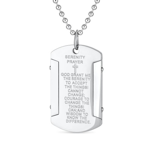 Inspirational Mantra Military Style Serenity Prayer Dog Tag Necklace for Men