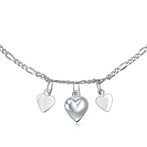 Romantic Multi Dangling Hearts Charms Anklet Ankle Bracelet Sterling Silver Adjustable 9, 10 Inch