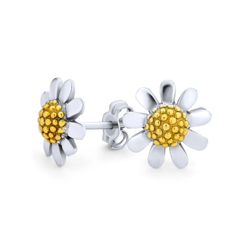 Summer Spring Time Two Tone Charm Sunflower Daisy Flower Pendant Necklace Gold Sterling Silver