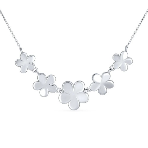 Statement Created Blue Opal Plumeria Hawaiian Flower Collar Necklace .925 Sterling Silver