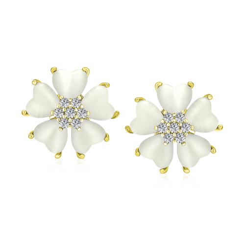 Romantic Mother of Pearl CZ Jade Heart Petal Flower Clip-On Earrings GoldSilver White Gold