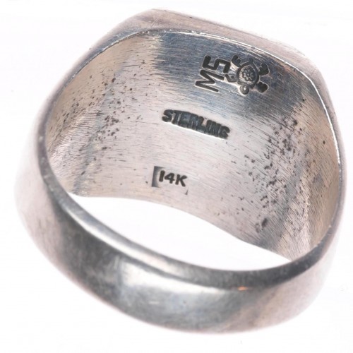 sz13 Mitchel sockyma Hopi 14k gold sterling silver Kokopelli men’s ring
