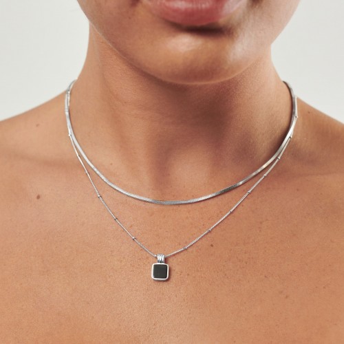 Harris Reed In Good Hands Mini Pendant Slider Necklace | Silver Plated/Cubic Zirconia & Black Onyx