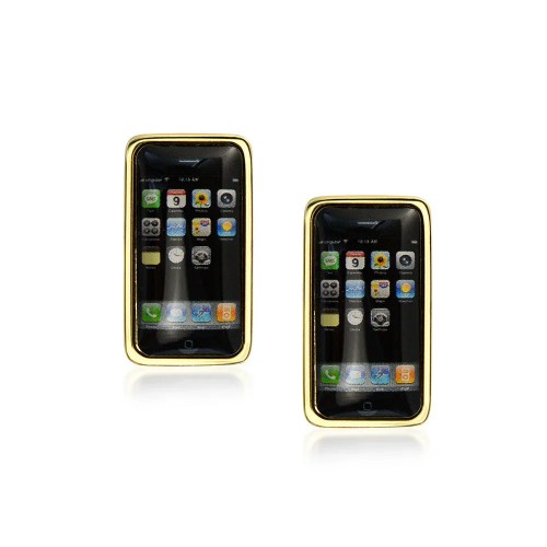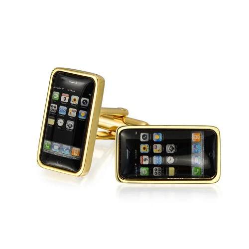 Texting Addict Black Cell Phone Shirt Cufflink for Men Executive Gift Gold Tone
