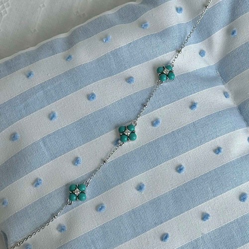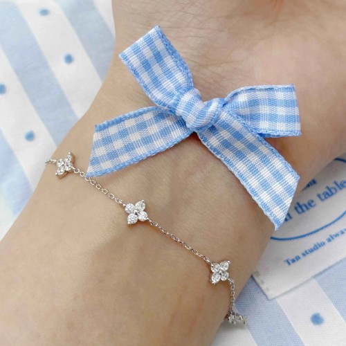 “Four-Leaf Clover Tale” 925 Sterling Silver Charm Bracelet with Zircon – Luck in Every Link