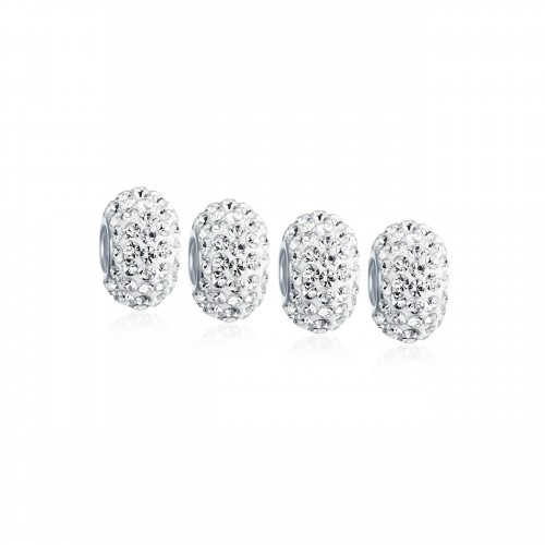Mixed Set Green & White Glass Charm Bead for European Bracelets with Sterling Silver Core