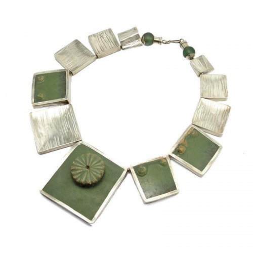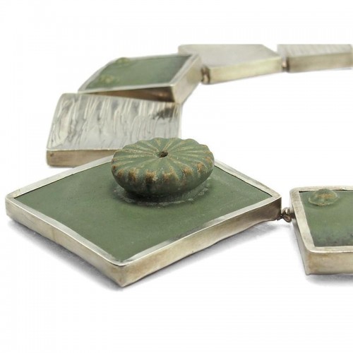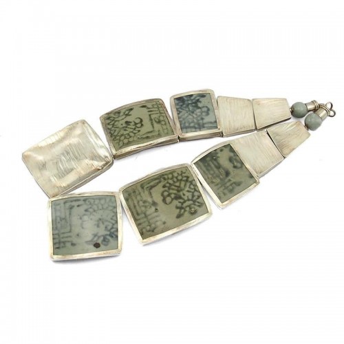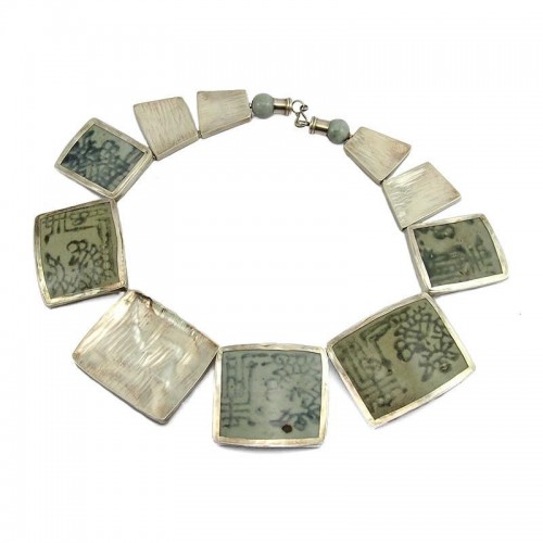95% Pure Silver with 19th Century Pottery Fragments Necklace