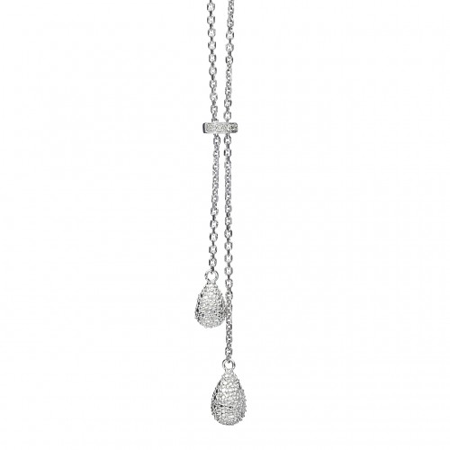 Artisan Sterling Silver and Diamond Double Teardrop Necklace