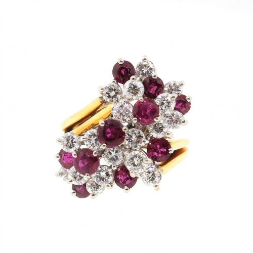 Diamond & Ruby Cocktail Ring in 18K Gold