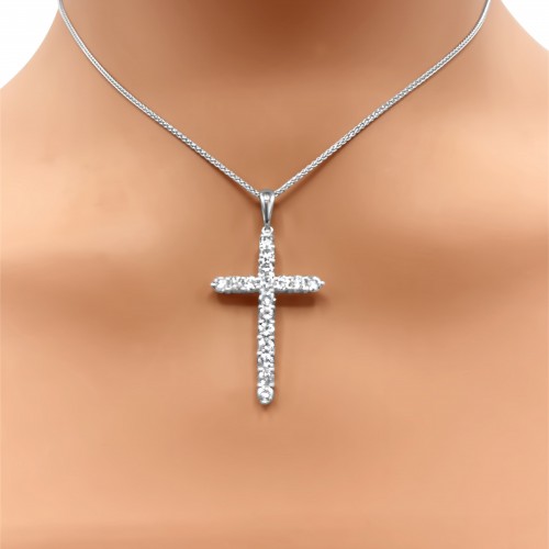 14kt White Gold Diamond Cross Necklace