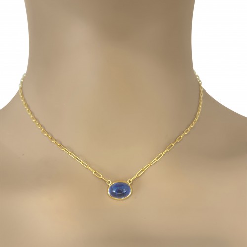 18kt Yellow Gold Cabochon Sapphire Pendant Necklace