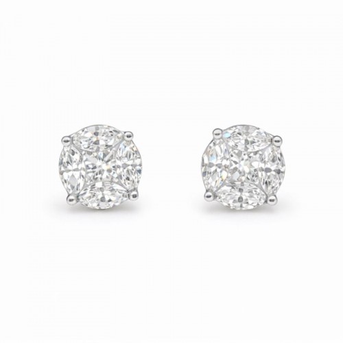 Mixed Shape Diamond Cluster Stud Earrings