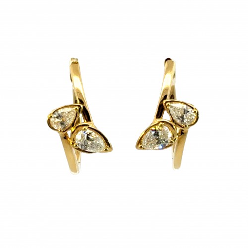 Pear Cut Moi et Toi Diamond Hoop Earrings in 18K Yellow Gold