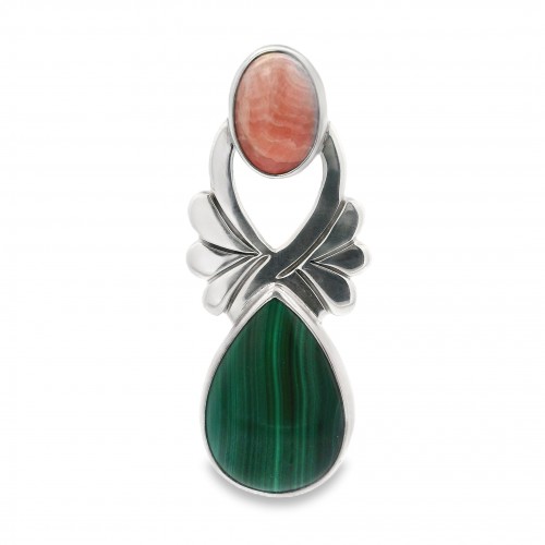 Malachite & Rhodochrosite Pendant – Pear & Oval Set with Wing Design