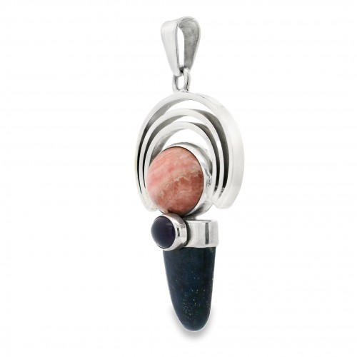 Malachite & Rhodochrosite Pendant – Pear & Oval Set with Wing Design