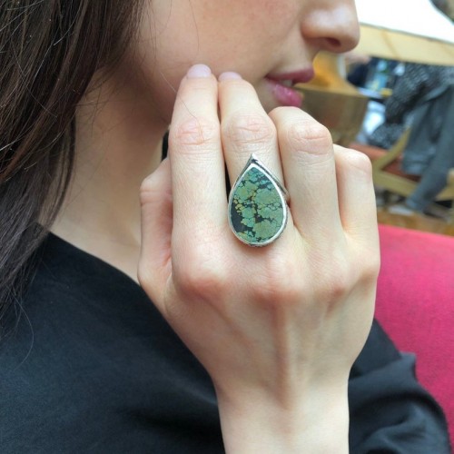 Turquoise Silver Ring – Teardrop Ring, Natural Turquoise Ring, Statement Turquoise Ring