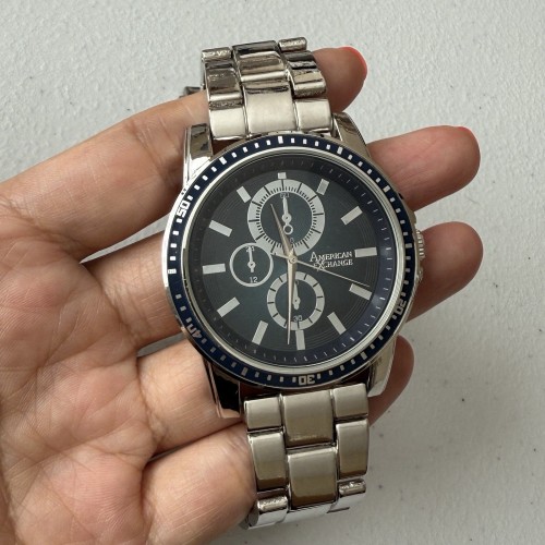 American Exchange Men’s Watch Alloy Silver Tone Bracelet Quartz 43mm Round Case