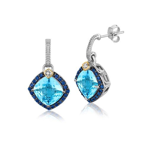 18k Yellow Gold & Sterling Silver Oval Pendant with Citrine, Quartz, & Diamonds 18